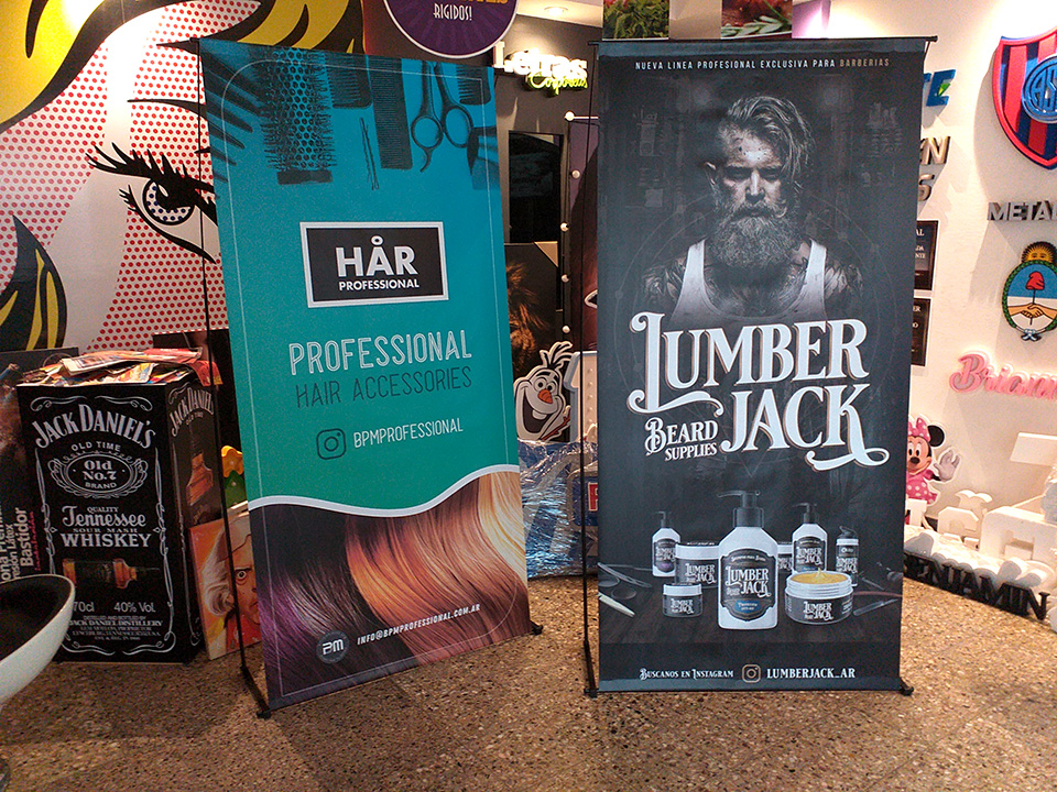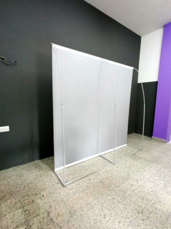 También tenemos entre las opciones el Roll Up, que es elegante, el más fácil de armar, construido en aluminio y tiene una excelente terminación.
