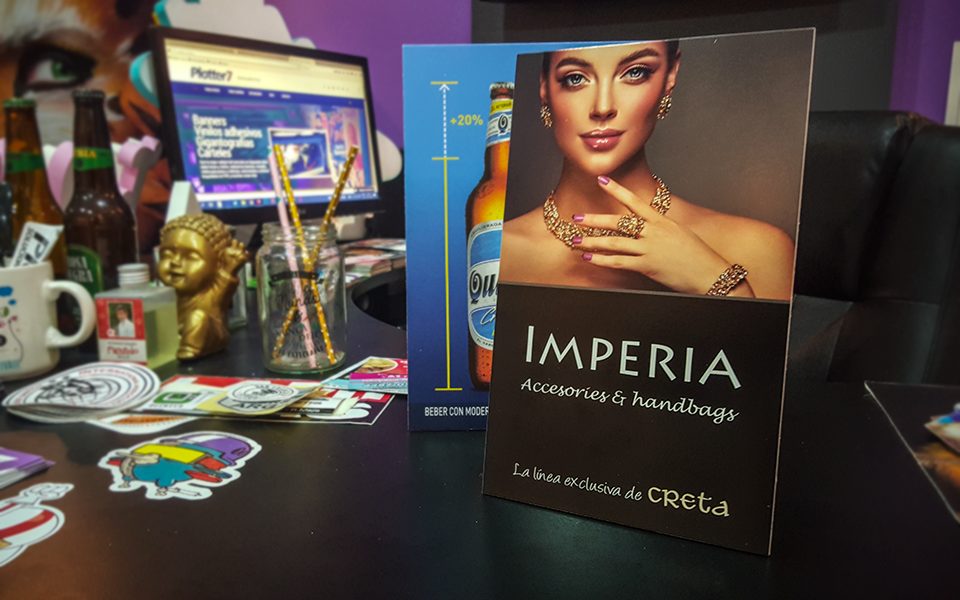 Nuestros displays de escritorio son impresos en vinilo con tintas látex y montado en PVC espumado de 3mm. Este material es lavable y no se estropea si se humedece o si se moja accidentalmente.